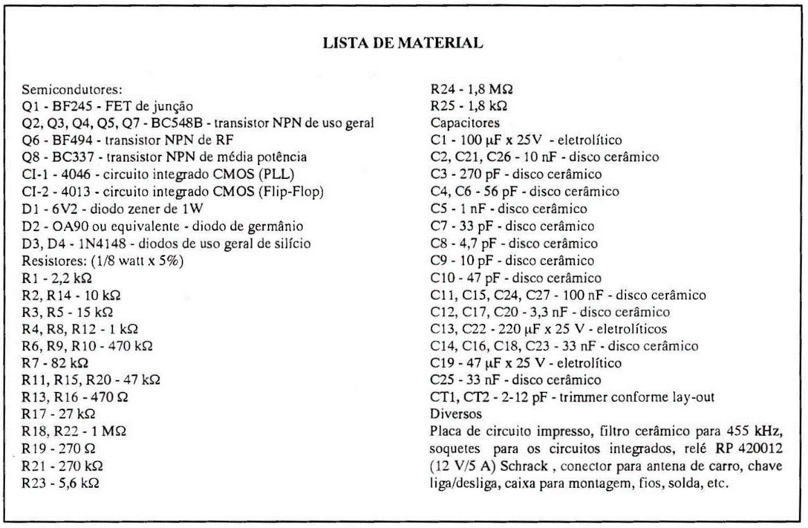 - L1 é formada por 4 espiras de fio de 0,5 mm de espessura sobre urna forma de 6 mm de diâmetro com núcleo de ferrite ajustável.