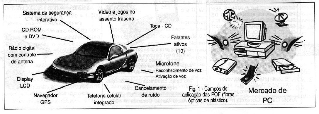 A Mercedez Benz já usa o sistema D2B de barramento óptico em seus veículos desde 1998 e promete a utilização de um barramento óptico mais avançado, o MOST. a partir do ano 2000. Observe na figura 1 vários campos de aplicação das PoFs.
