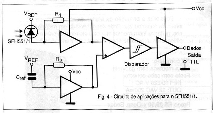 Na figura 4 temos um circuito prático utilizando o fotodetector integrado SFH551/1.