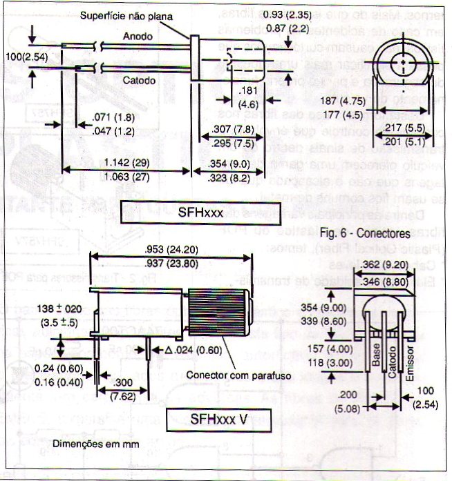 Na figura 6 temos os tipos que tem uma abertura de 2,2 mm para funcionar com fibras padronizadas de 1 mm.