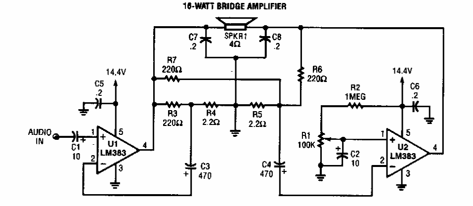 Encontrado numa Popular Elecronics, esta configuração também aparece nesta seção, mas obtida de outras fontes. A alimentação de 14,4 V permite que o circuito seja usado no carro.