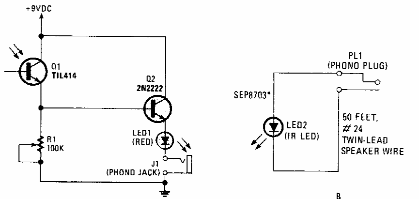 Encontramos este circuito numa Popular Electronics dos anos 80. Este circuito eventualmente não funciona com controles modernos de maior velocidade. Devem ser feitas experiências.