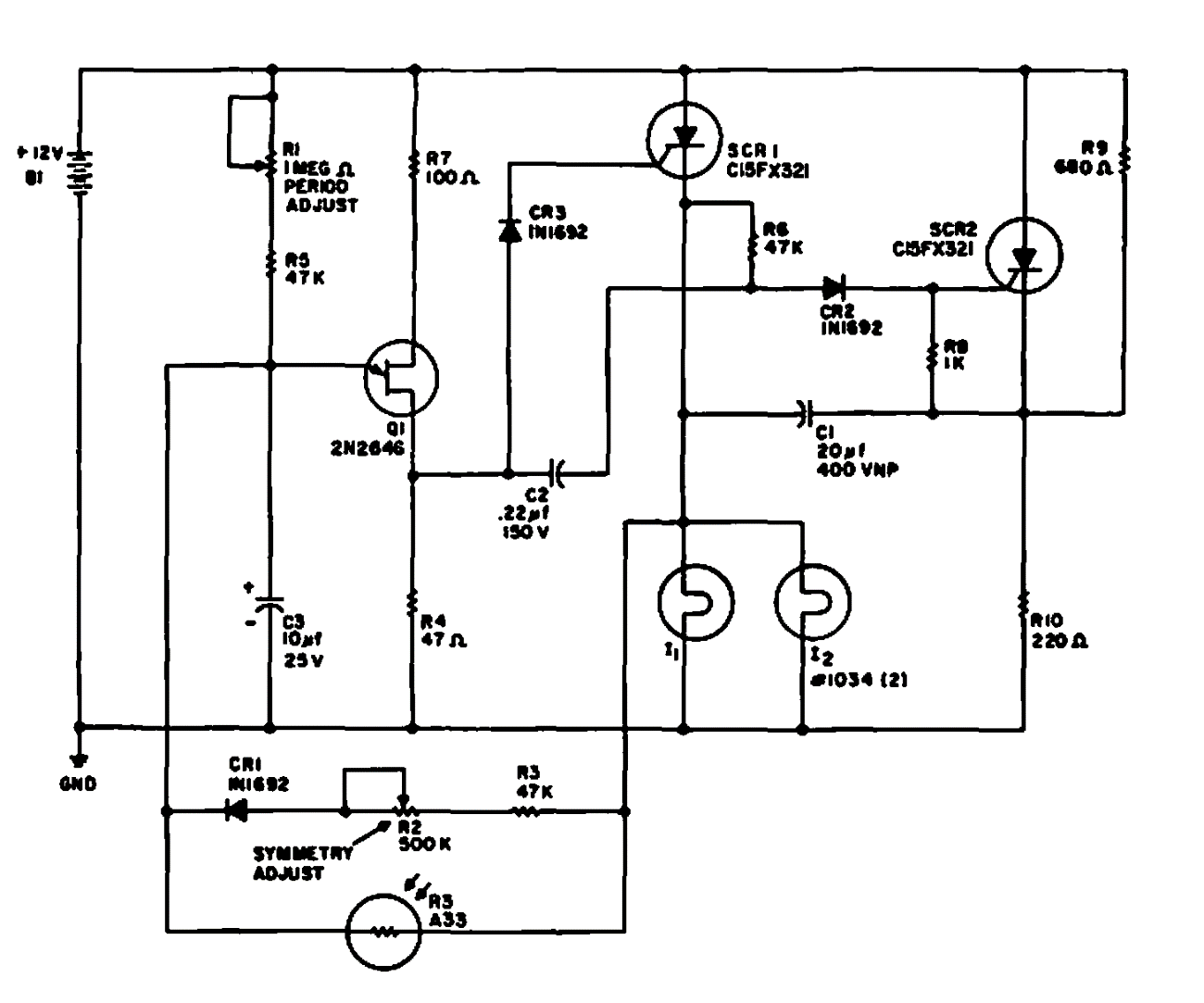 Encontrado em uma publicação americana antiga, este artigo é indicado para lâmpadas incandescentes. Os SCRs podem ser de tipos equivalentes modernos.