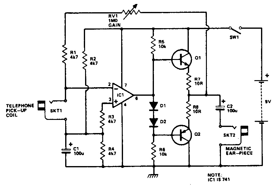 Encontrado em uma antiga publicação inglesa e também em outros pontos deste site em diversas versões, este circuito capta o ronco da rede de energia ou um sinal de áudio aplicado a um cabo para permitir sua localização numa parede ou piso.
