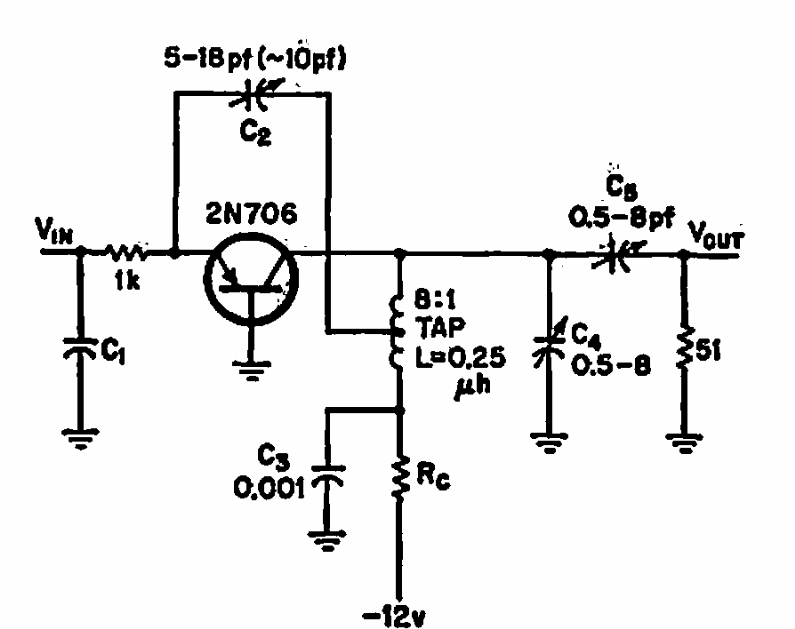 Este circuito foi obtido numa documentação de 1969. O circuito tanto modula a corrente de emissor como a tensão de coletor do transistor. O circuito pode operar com frequências até 100 MHz com o transistor original sugerido.