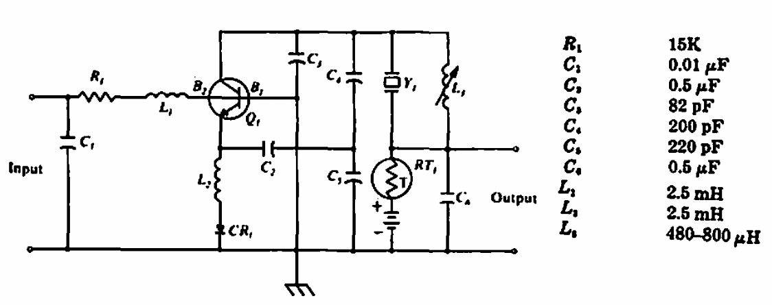 Este circuito vem de uma documentação da NASA de 1966. O circuito faz uso de componentes discretos sendo indicado para a produção de sinais de FI de 455 kHz.