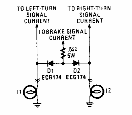 Este circuito foi sugerido por uma Popular Electronics dos anos 90. O circuito é bastante simples usando pequenas lâmpadas de 12 V. Pode ser adaptado para usar LEDs.