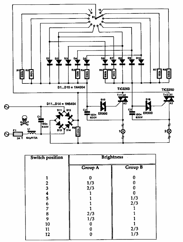 Este interessante circuito encontrado numa Elektor dos anos 90 controla cargas em quatro quadrantes da condução de dois triacs. O circuito pode ser elaborado com praticamente qualquer triac conforme a corrente da carga.