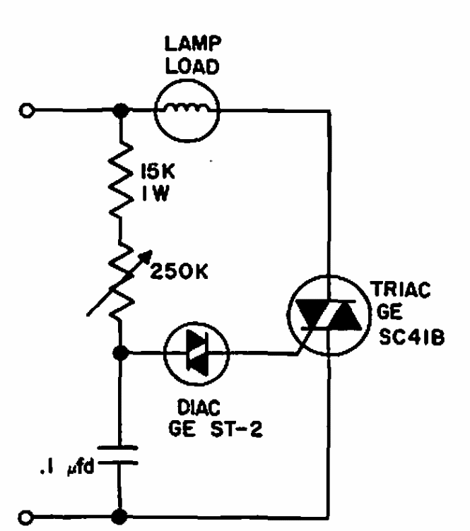Encontrado numa documentação da General Electric de 1966, este dimmer só deve ser usado com lâmpadas incandescentes. O Triac é de acordo com a potência da lâmpada.