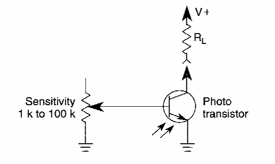 Este método de se controlar a sensibilidade de um fototransistor foi encontrado numa Electronics Now dos anos 90. Vale para qualquer fototransistor.