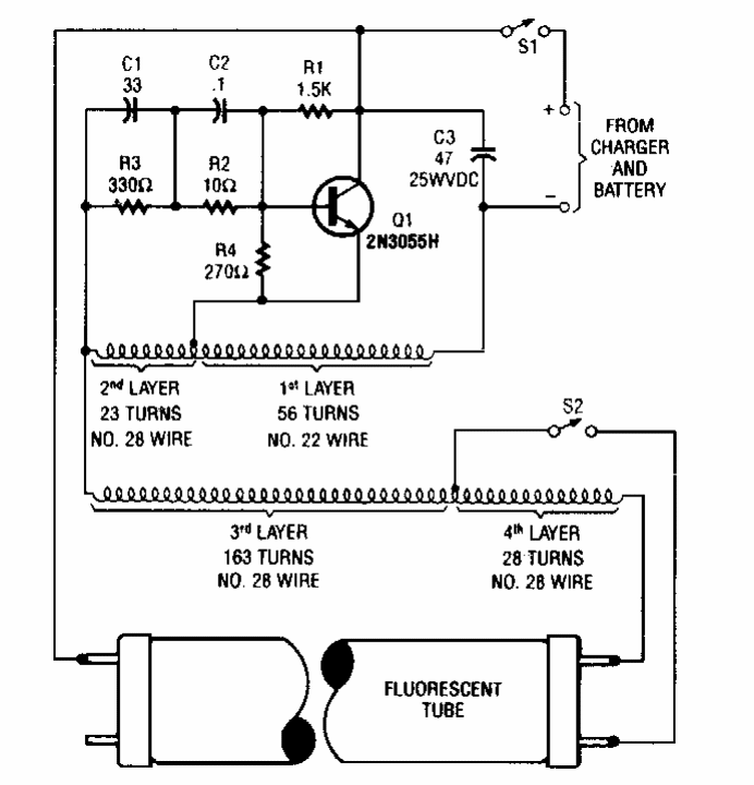 Encontrado numa Popular Electronics dos anos 90, este circuito usa componentes ainda comuns. Sua potência é de 20 W exigindo-se cuidado no enrolamento dos transformadores.