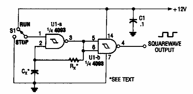 Este circuito gatilhado, encontrado numa Popular Electronics dos anos 90 pode ser usado como shield, se alimentado com 5 V. A frequência depende do capacitor.