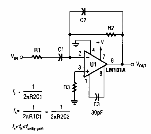Esta configuração aparece em outros pontos deste site. Esta é de uma Popular Electronics dos anos 90 e é válida para outros amplificadores operacionais.