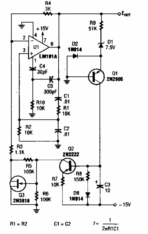 Este circuito foi encontrado numa Popular Electronics dos anos 90. Os transistores admitem equivalentes, assim como o operacional.