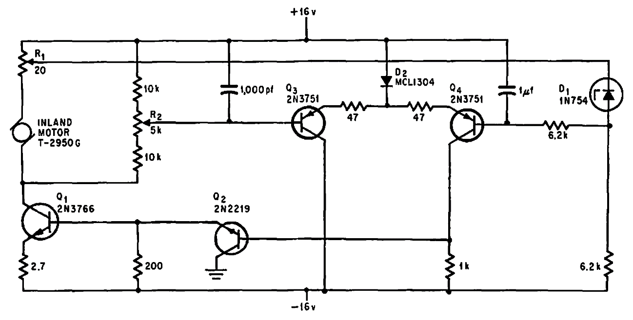 Encontrado numa publicação americana de 1968, este circuito tem por finalidade manter o torque de um motor DC constante. O transistor de potência depende do motor.