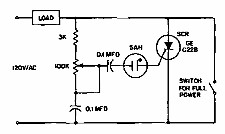 Este circuito é de um manual SCRs da General Electric de 1967. O circuito admite outros SCRs conforme a potência da carga controlada. O controle é de meia onda.