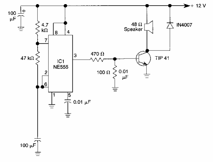 Encontrado numa documentação dos anos 90, este circuito já inclui uma etapa de amplificação. A alimentação de 12 V permite seu uso no carro.