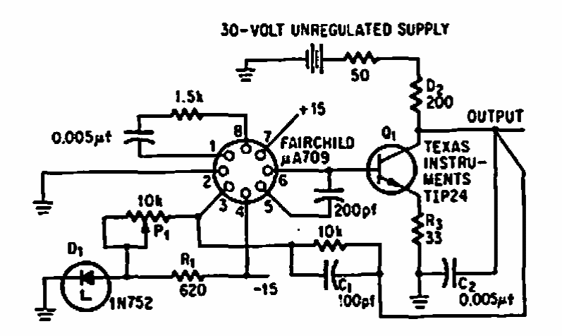 Este circuito foi encontrado numa publicação americana de 1967. O circuito usa um operacional da época, disponível em invólucro metálico. Equivalentes modernos podem ser usados. A fonte é de 15 V x 60 mA.