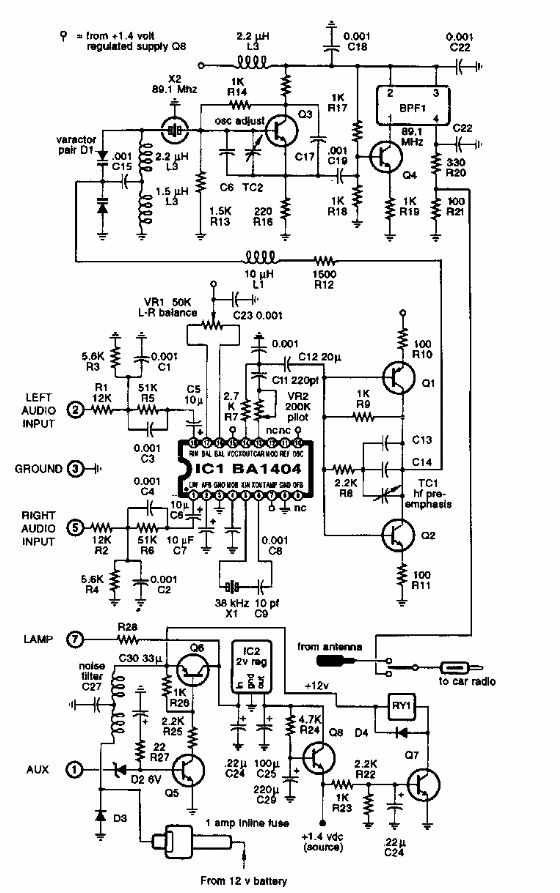 Este circuito foi encontrado numa Radio Electronics dos anos 90. O codificador ou multiplexador de FM é um componente pouco comum atualmente.