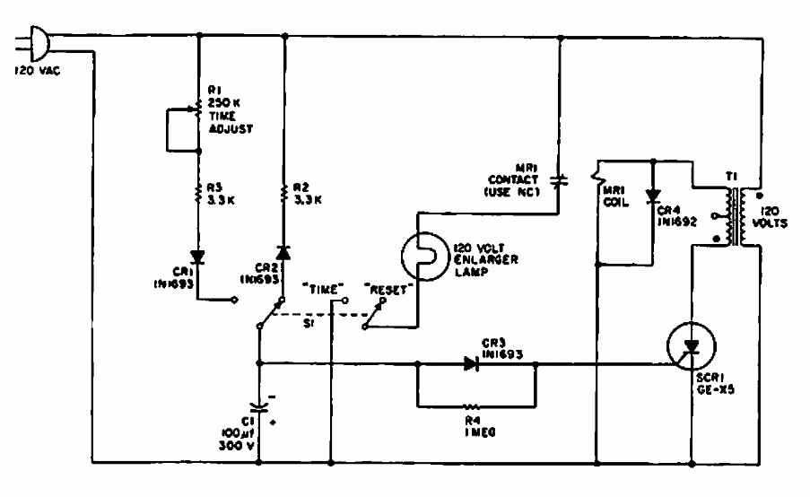 Encontrado num Hobby Manual da General Electric de 1965, este timer originalmente foi criado para operar com ampliadoras de fotos da época. O circuito pode ser adaptado para outras finalidades.