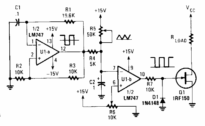 Encontramos este circuito numa Popular Electronics dos anos 90. O circuito pode ser implementado com componentes modernos. O MOSFET de potência é de acordo com a carga controlada.