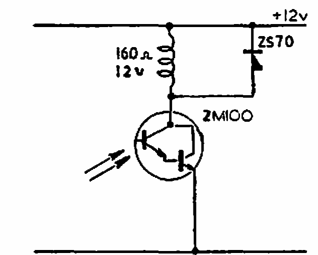 Usando um único fototransistor Darlington, este circuito aciona um relé de alta sensibilidade, por exemplo, um reed relé. O circuito é de uma documentação inglesa antiga.