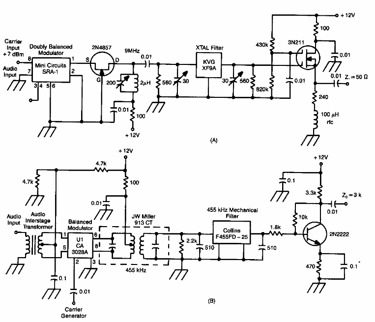 Encontrado num ARRL Handbook dos anos 90, este circuito se destina à produção de sinais nas bandas laterais para transmissão em SSB.