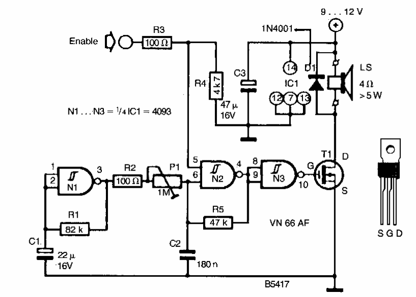 Este circuito foi encontrado em documentação europeia dos anos 90. O circuito já inclui uma potente etapa de amplificação. O MOSFET pode ser de qualquer tipo.