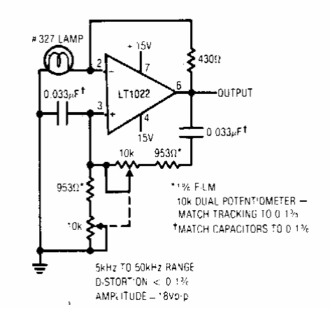 Encontrado em documentação da Linear Technology dos anos 90, este circuito usa um operacional da época. Podem ser testados equivalentes. A lâmpada regula o sinal.