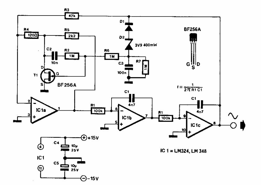 Este circuito foi encontrado numa Elektor dos anos 90. O circuito usa componentes comuns ainda hoje, necessitando de uma fonte de alimentação simétrica.