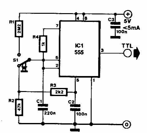 Encontramos este circuito sem repique numa Elektor dos anos 90. O circuito pode ser usado como um shjeld para chaves e sensores mecânicos em aplicações com microcontroladores e em robótica.