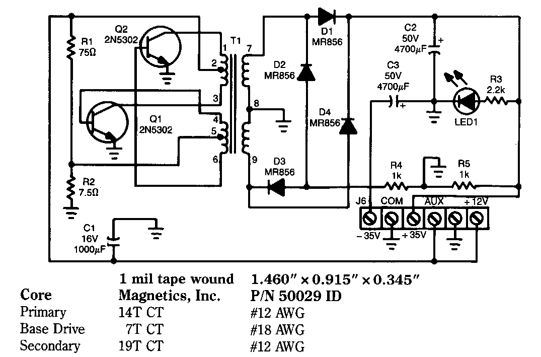 Sugerido por uma Radio Elecrtronics dos anos 90, este circuito se destina a alimentação de equipamentos móveis da época. Os dados do transformador são dados junto ao diagrama.