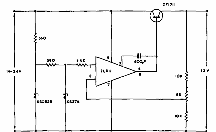 Este circuito foi encontrado numa documentação da Ferranti de 1967. Os componentes são da época. O circuito pode ser elaborado com base em componentes atuais.