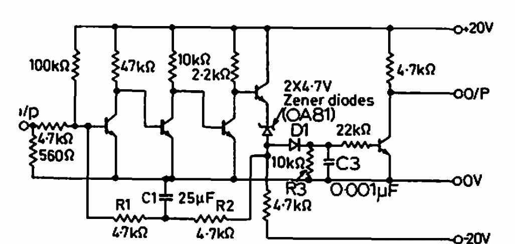 Este circuito foi encontrado numa documentação americana de 1969. Não são feitas indicações dos transistores usados, mas podem ser testados tipos de uso geral.
