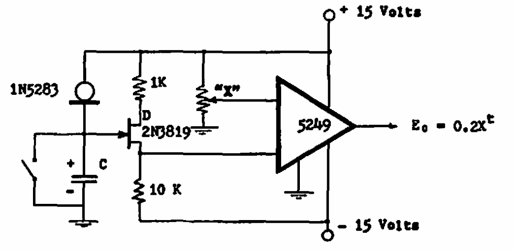 Encontrado numa documentação dos anos 60, este circuito faz uso de um amplificador operacional da época e de um diodo de corrente, ambos difíceis de encontrar atualmente.