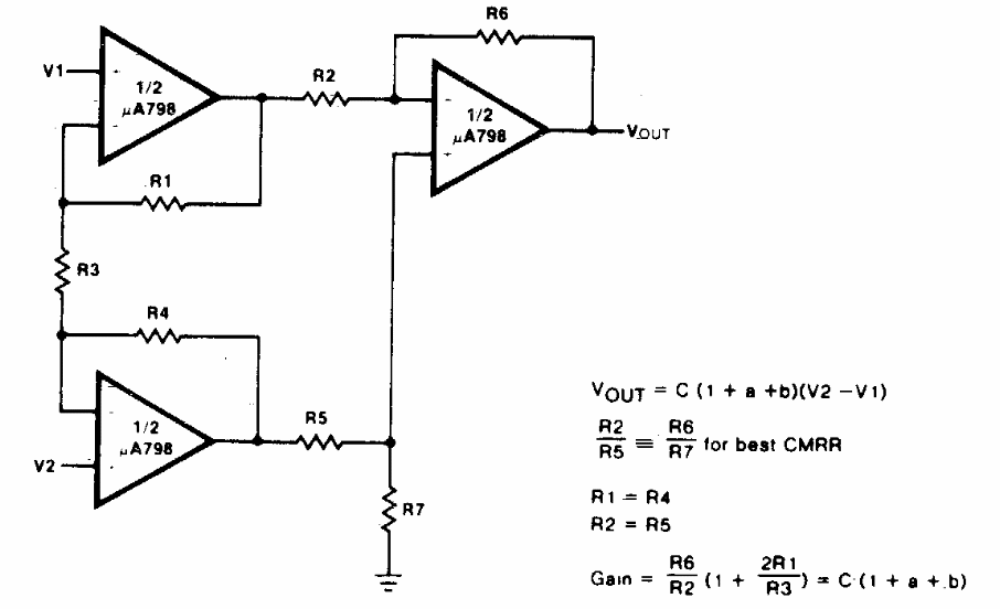 Este circuito de alta impedância de entrada foi encontrado numa documentação americana dos anos 80. A fonte de alimentação deve ser simétrica. O circuito se aplica a operacionais modernos.