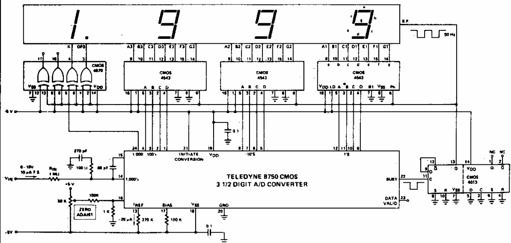 Este circuito foi obtido em documentação da Teledyne dos anos 70. O componente conversor usado é pouco comum atualmente.