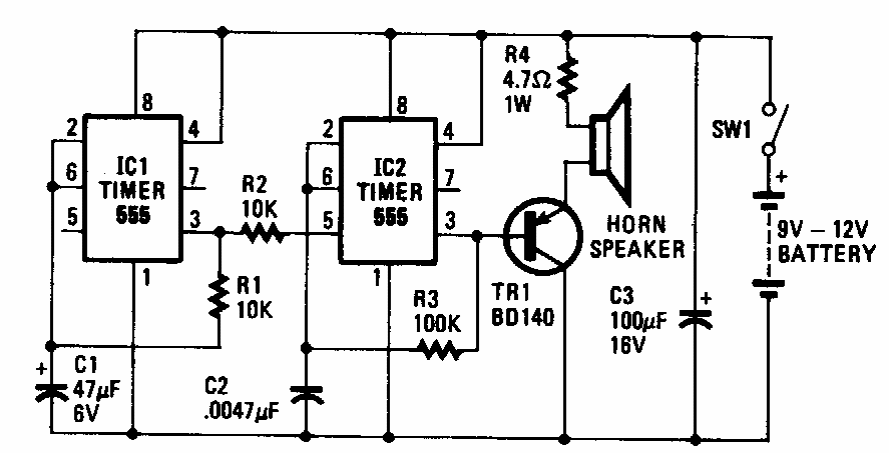 Esta é uma das muitas versões de sirene modulada que podem ser encontradas no nosso site. Encontramos numa Hands On Electronics dos anos 90.
