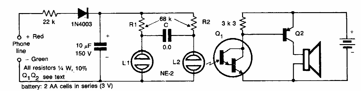 Este circuito foi encontrado numa Electronic Engineering dos anos 80. O circuito faz uso de um multivibrador com lâmpadas neon e um sistema de acoplamento óptico.