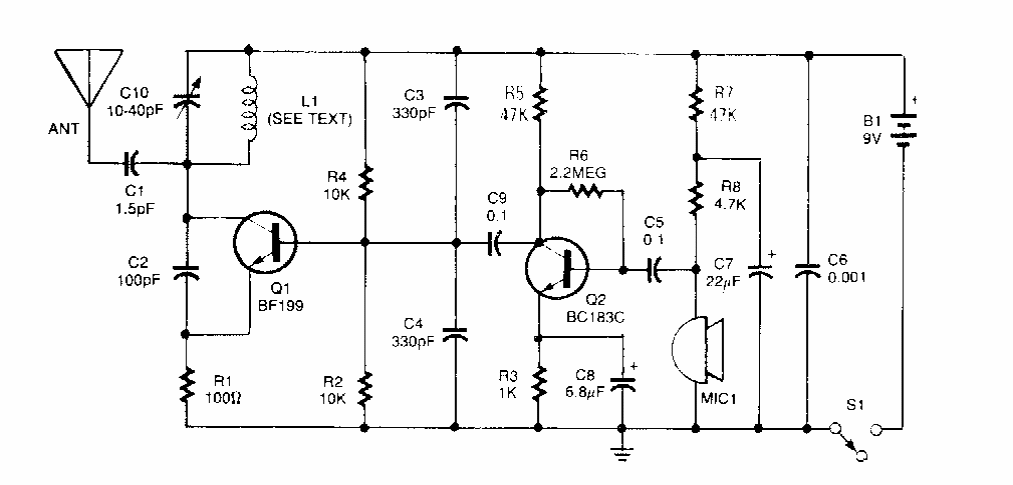 Esta versão é uma das muitas que podem ser encontradas em nosso site. Encontramos numa Radio Electronics dos anos 90. Os transistores admitem equivalentes modernos.