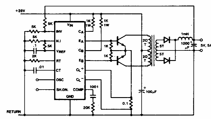 Este conversor usa um circuito integrado SG1524, pouco comum em nossos dias. O circuito é de uma documentação dos anos 80.