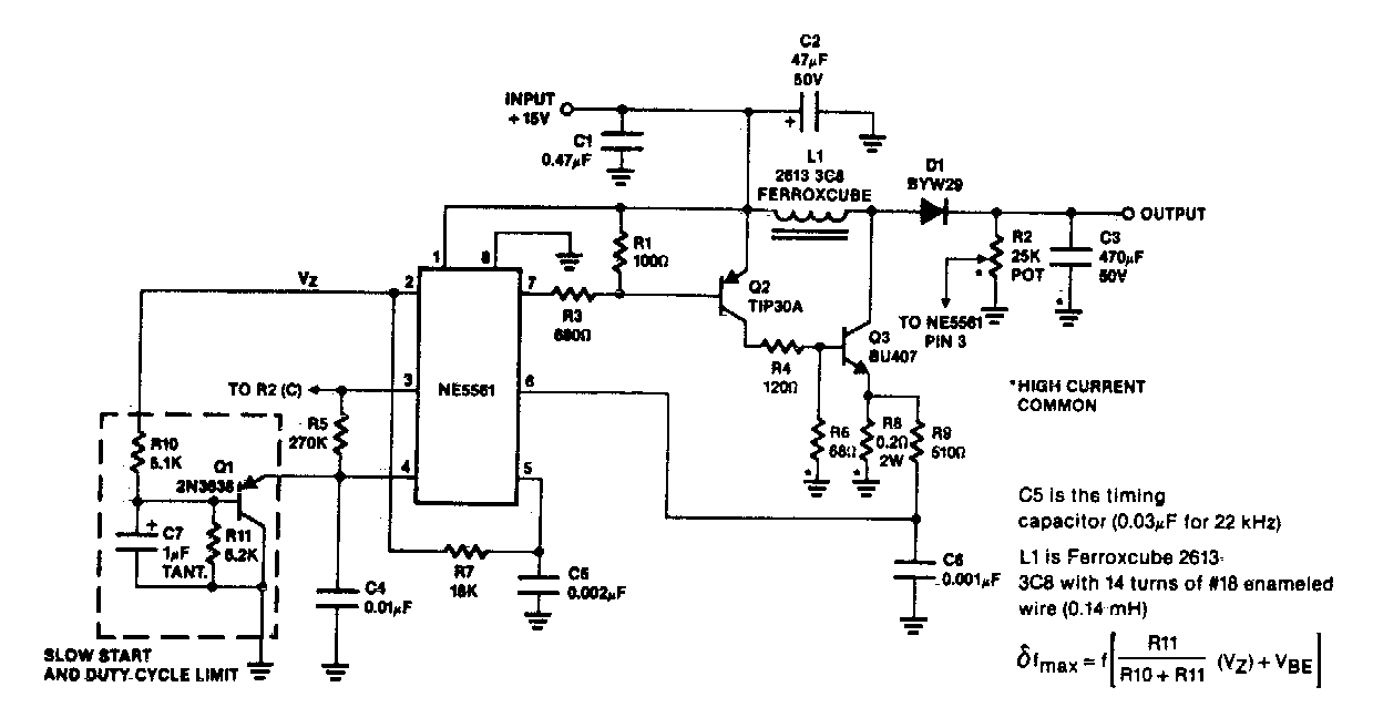 Este circuito foi encontrado numa documentação americana dos anos 80. Os componentes são da época. Ele fornece uma saída variável de 18 a 30 V com corrente de 200 mA.
