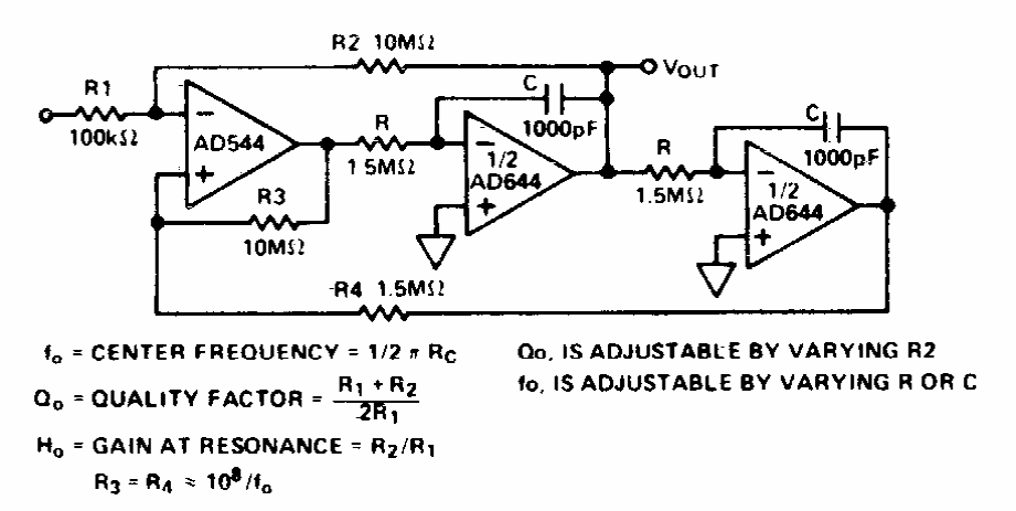 Este filtro variável com três amplificadores operacionais foi encontrado numa documentação dos anos 90. Amplificadores operacionais modernos podem ser usados. A fonte de alimentação deve ser simétrica.