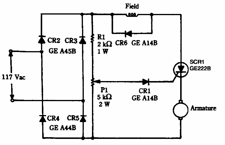 Este circuito é de uma documentação americana dos anos 90. O SCR pode ser de qualquer tipo e os diodos devem ter corrente de acordo com o motor controlado.