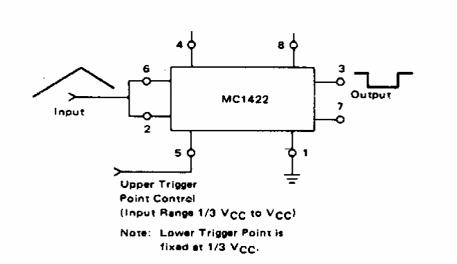 O circuito integrado usado neste disparador é pouco comum em nossos dias. Encontramos numa documentação dos anos 70. O circuito opera com sinais até 50 kHz.
