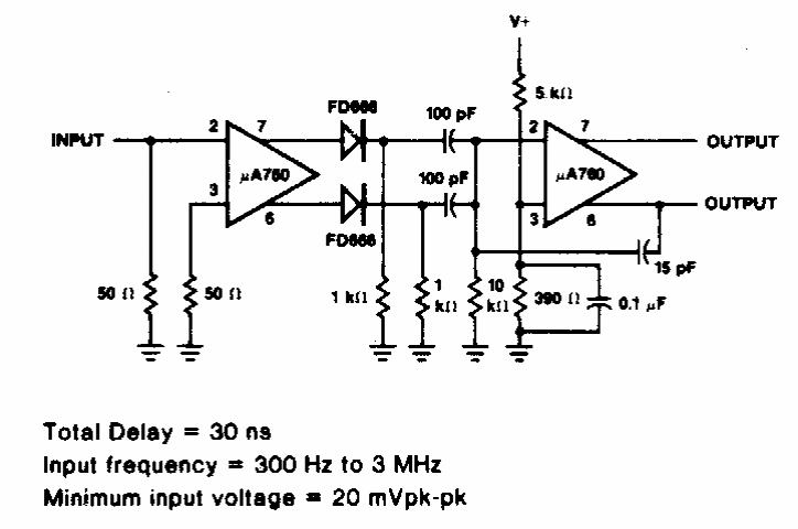 Este circuito é de uma documentação dos anos 90. Ele admite componentes equivalentes e para os componentes usados a faixa de frequências de entrada vai de 300 Hz a 3 MHz.