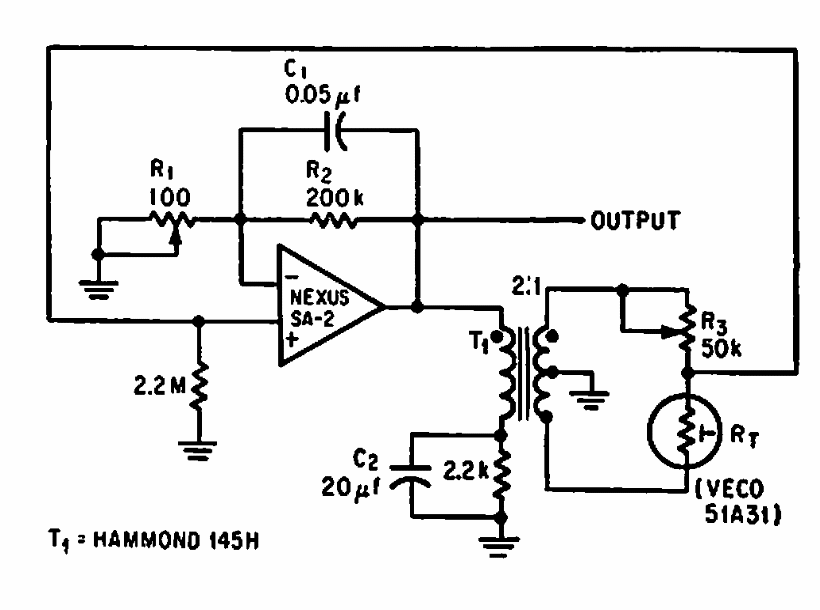 Encontramos este circuito numa antiga documentação americana. O amplificador operacional é da época e a saída usada para controlar um SCR ou outro controle de potência.