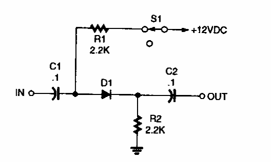 Encontrado numa Popular Electronics dos anos 90, este circuito consiste num comutador eletrônico acionado por tensão usando um diodo PIN.