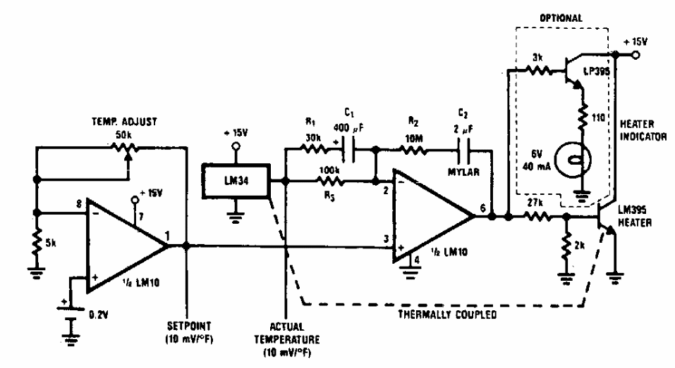 Encontrado numa documentação da National Semiconductor dos anos 90, este circuito pode ser implementado com componentes equivalentes modernos.