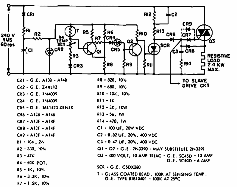 Este controle de temperatura semi-proporcional foi encontrado numa documentação americana antiga. Os componentes são da época e a potência máxima de 2,4 kW.